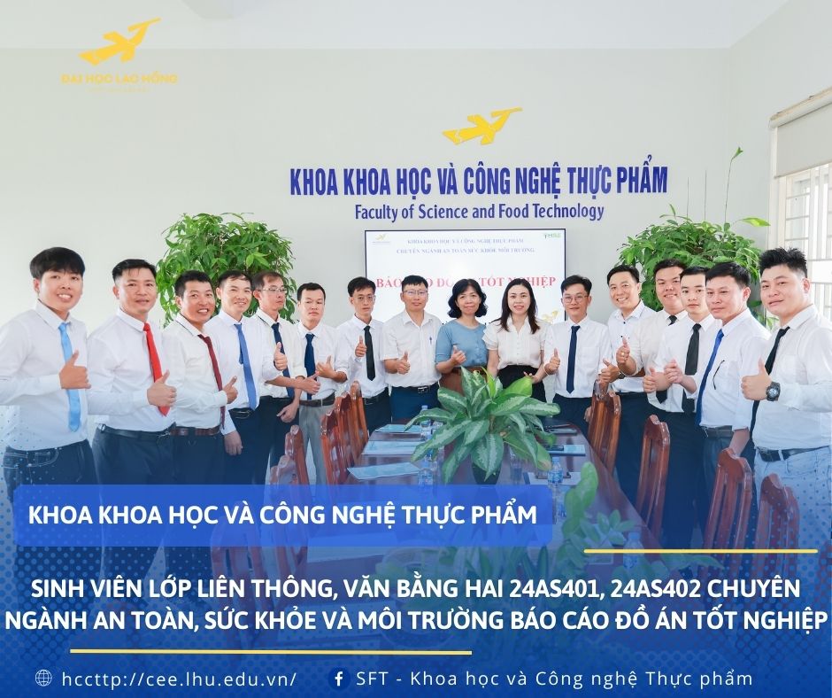 Kết thúc buổi báo cáo, các học viên đã bảo vệ thành công đồ án tốt nghiệp, thể hiện bản lĩnh, năng lực chuyên môn và sự nghiêm túc trong nghiên cứu. Thành quả này là minh chứng rõ nét cho quá trình học tập bền bỉ của người học, đồng thời khẳng định uy tín và chất lượng đào tạo của Khoa Khoa học và Công nghệ Thực phẩm trong việc đào tạo nguồn nhân lực đáp ứng yêu cầu thực tiễn và hội nhập.