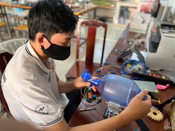 Tham gia làm máy trợ thở không chỉ có ý nghĩa hưởng ứng công tác phòng, chống dịch Covid-19 mà còn giúp SV  ĐH Lạc Hồng nâng cao được nhiều kỹ năng, tích lũy thêm nhiều kiến thức. Ảnh: LHU