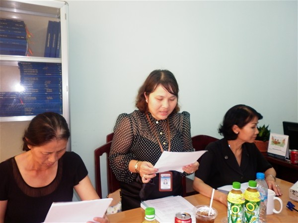 Cô. Lê Thị Ngọc Hương - Phó Khoa Ngoại ngữ đọc quyết định thành lập Hội đồng