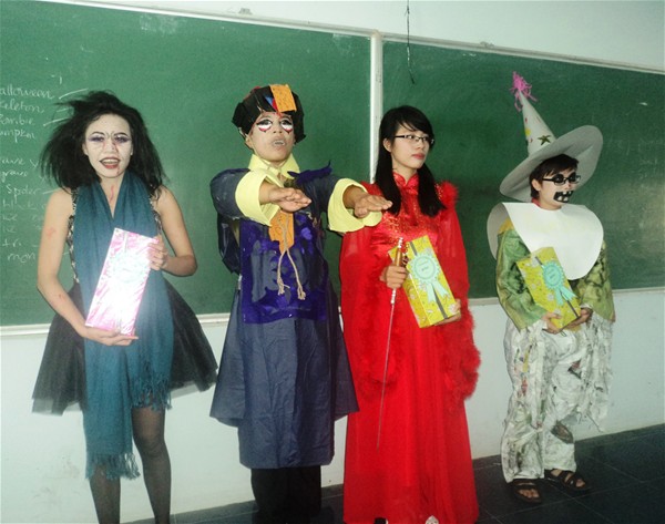 Để tiếp nối thành công của những câu lạc bộ tiếng Anh vừa qua và hòa vào không khí chung của ngày lễ Halloween trên toàn thế giới, vào lúc 8h00 ngày 20 tháng 10 năm 2013, cùng với chủ đề trên, Khoa Ngôn Ngữ Anh đã tổ chức Câu lạc bộ tiếng Anh lần II năm học 2013 – 2014 thu hút sự tham gia của trên 200 sinh viên trong và ngoài Khoa cùng sự góp mặt của đông đủ giảng viên, cán bộ nhân viên Khoa Ngôn Ngữ Anh. Halloween, một chủ đề luôn được các bạn sinh viên đón nhận nồng nhiệt mỗi khi nhắc đến, và buổi sinh hoạt câu lạc bộ lần này cũng nhằm mục đích giúp các sinh viên trong toàn trường có cơ hội làm quen với một số nét văn hóa truyền thống của người phương Tây và tạo môi trường để các bạn phát triển ngôn ngữ thứ hai của  mình. Đến với Câu lạc bộ tiếng Anh vừa qua, các bạn sinh viên được hòa mình vào không khí của ngày Halloween thông qua các hoạt động vui nhộn và hấp dẫn như: Make them say it, Let’s memorize, Let’s say it, Learning about Halloween, Pumpkin carving contest, Fancy contest,… ngoài ra các bạn còn nhận được rất nhiều phần quà hấp dẫn và có ý nghĩa cho việc học của mình khi tham gia nhiều hoạt động xuyên suốt chương trình; quan trọng hơn nữa là khả năng ngoại ngữ của các bạn sinh viên cũng được phát huy tối đa khi sử dụng 100% tiếng Anh. Sau đây, Khoa Ngôn Ngữ Anh xin chia sẻ một số thông tin về lễ hội Halloween để từ đó chúng ta càng hiểu khái quát  hơn về nguồn gốc và quá trình phát triển của lễ hội cho đến thời điểm hiện nay: