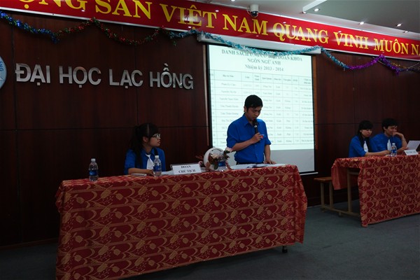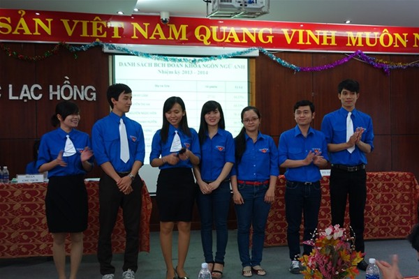 Được sự đồng ý của Chi bộ 6, Đoàn trường Đại học Lạc Hồng và Lãnh đạo Khoa Ngôn Ngữ Anh, vào lúc 8h30 ngày 20 tháng 12 năm 2013, BCH Đoàn Khoa Ngôn Ngữ Anh đã long trọng tổ chức Đại hội Đoàn khoa Ngôn Ngữ Anh nhiệm kỳ 2013-2014 tại Hội tường B203, cơ sở I, trường Đại học Lạc Hồng.