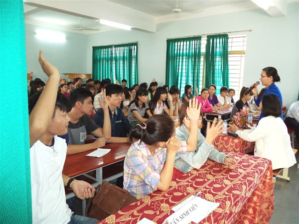 Tham dự buổi gặp mặt có sự hiện diện của Ban chủ nhiệm Khoa, các giảng viên, nhân viên cùng toàn thể các bạn tân sinh viên khóa 2014.