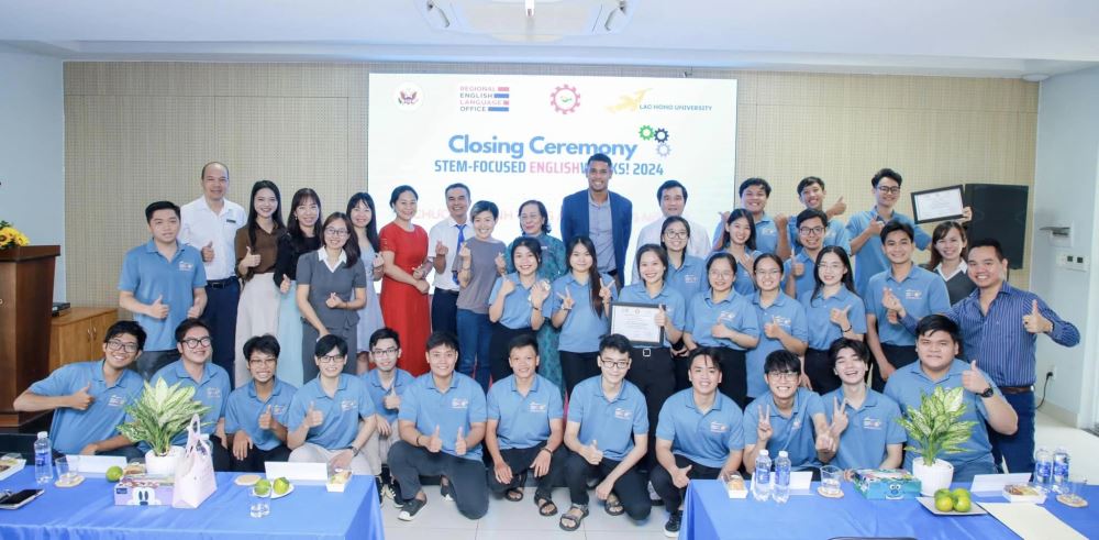 Sáng nay, ngày 14/11/2024, tại Đại học Lạc Hồng đã diễn ra Lễ Bế giảng khóa học Tiếng Anh Hướng Nghiệp 2024 – đánh dấu chặng đường học tập 6 tháng đầy ý nghĩa, với sự hỗ trợ toàn phần từ Văn phòng tiếng Anh khu vực (RELO) và Lãnh sự quán Hoa Kỳ tại Thành phố Hồ Chí Minh và Trung tâm Đào tạo Khu vực của SEAMEO tại Việt Nam. Đây là khóa học không chỉ giúp học viên phát triển khả năng tiếng Anh chuyên ngành mà còn mở ra nhiều cơ hội nghề nghiệp cho các bạn trong lĩnh vực STEM (Khoa học, Công nghệ, Kỹ thuật và Toán học).
