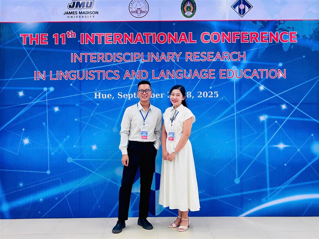 Khoa Ngôn ngữ Anh tự hào khi 02 Nghiên cứu sinh của Khoa đã đại diện cho tinh thần học thuật tiên phong, trình bày báo cáo tại Hội thảo Quốc tế Nghiên cứu liên ngành về Ngôn Ngữ và Giảng dạy Ngôn ngữ lần thứ XI tại Trường Đại học Ngoại ngữ, Đại học Huế! (27-28/9/2025)