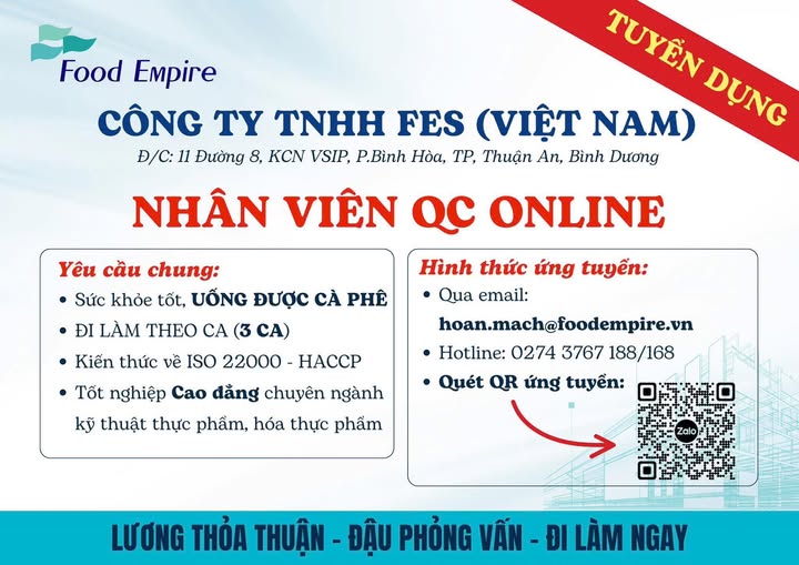 Công Ty TNHH FES tuyển dụng nhân viên QC ngành Công nghệ thực phẩm