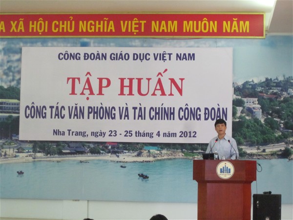 Thực hiện Nghị quyết số 11/NQ-BCH của Ban Chấp hành Công đoàn Giáo dục (CĐGD) Việt Nam về kế hoạch bồi dưỡng cán bộ CĐGD các cấp năm học 2011 -2012, Ban Thường vụ CĐGD Việt Nam tổ chức lớp tập huấn cán bộ công đoàn làm công tác văn phòng, công tác tài chính đối với CĐGD các cấp.