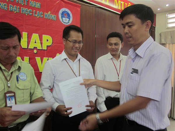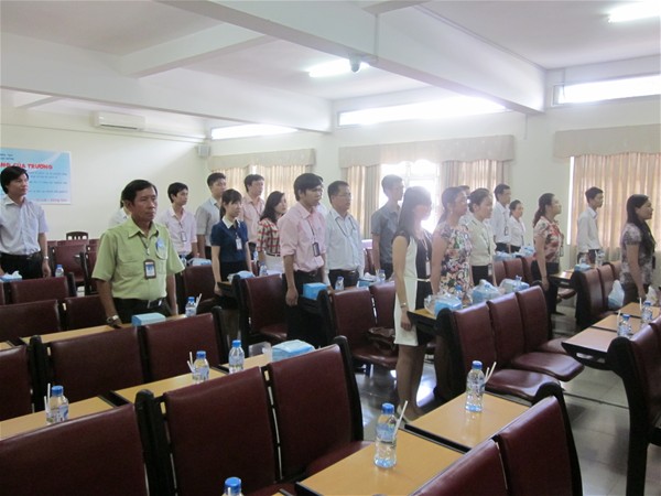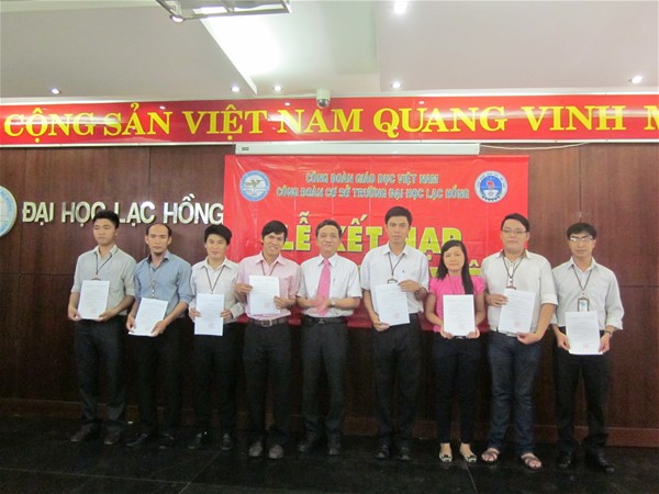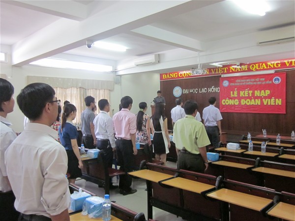 Tham dự buổi Lễ có sự hiện diện của TS. Diệp Cẩm Thu – Chủ tịch Công đoàn, TS. Nguyễn Văn Nam – Phó Chủ tịch Công đoàn, quý Thầy Cô đại diện cho BCH Công đoàn ,Tổ trưởng Công đoàn và 33 công đoàn viên được kết nạp đợt 01 – năm 2013.