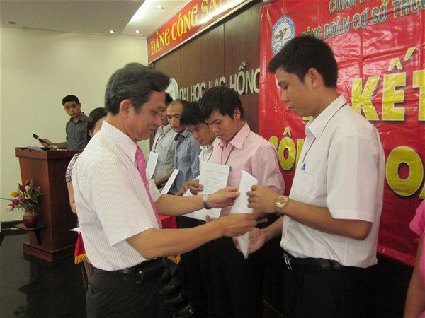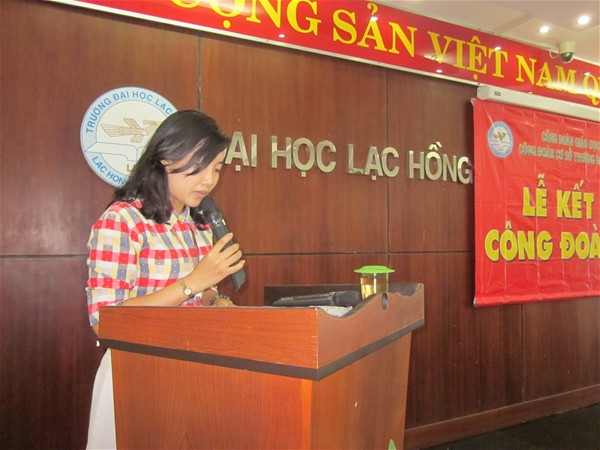 Trong phần khai mạc TS. Diệp Cẩm Thu đã khái quát lại những thành tích về số lượng và chất lượng mà Công đoàn đã đạt được trong thời gian qua đồng thời cảm ơn sự quan tâm sâu sắc của Đảng ủy, Hội đồng quản trị và Ban Giám hiệu trong việc tạo điều kiện thuận lợi để Công đoàn hoàn thành tốt các sứ mệnh của mình…Cũng tại buổi Lễ, trong phần thông qua Quyết định kết nạp Công đoàn viên, TS. Nguyễn Văn Nam cũng đã dí dỏm chia sẻ về vai trò của Công đoàn Trường như là chiếc cầu nối, người bạn thân thiết để sẻ chia những niềm vui, nỗi buồn …đối với các tân công đoàn viên được kết nạp