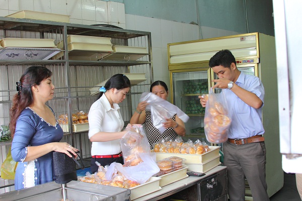 bằng cách trao tận tay các tình nguyện viên gần 100 cái bánh
