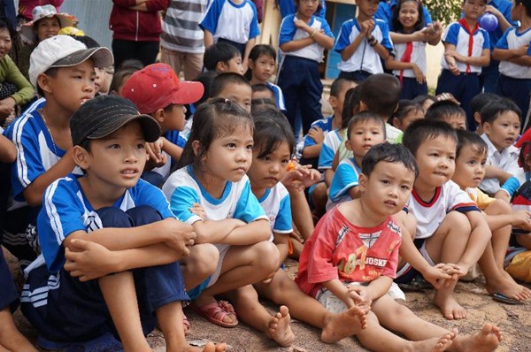 Chương trình cũng đã dành tặng 100 phần quà (trị giá 150 ngàn/phần) bao gồm tập vở, bánh kẹo, mì gói, sữa,…cho tất cả các em học sinh từ cấp mầm non đến các khối lớp 1,2,3,4,5 của Trường Tiểu học Cây Sung. Những phần quà tuy không có giá trị lớn về mặt vật chất song nó lại có ý nghĩa rất lớn đối với các em học sinh nơi đây.