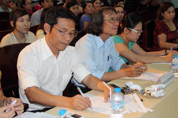 BGK đã có buổi làm việc khá vất vả, (từ trái qua) CS Ngọc Khoa, NS Hồng Sơn và Cô Ngọc Quế