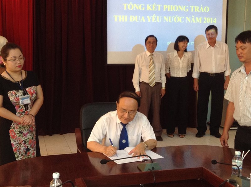 Cũng trong Hội nghị thầy TS Diệp Cẩm Thu đã thay mặt lãnh đạo nhà trường cũng đã ký kết giao ước thi đua năm 2015 với các đơn vị trong cụm.