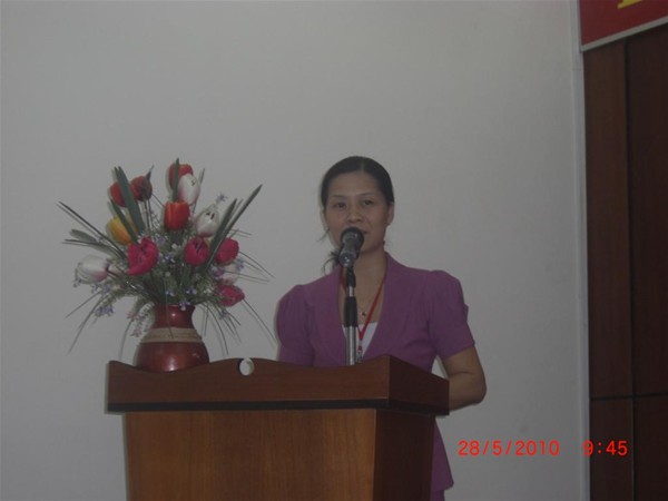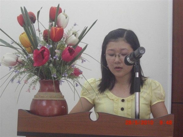 Cô Trần Minh Thùy Dương Khoa Đông phương , đại diện cho các Công đoàn viên đọc đơn xin gia nhập Công đoàn và phát biểu ý kiến, bày tỏ tình cảm muốn tham gia vào tổ chức Công đoàn , góp sức xây dựng Công đoàn nhà trường ngày càng vững  mạnh , tạo thành tổ ấm thật sự cho mọi người lao động trong nhà  trường.