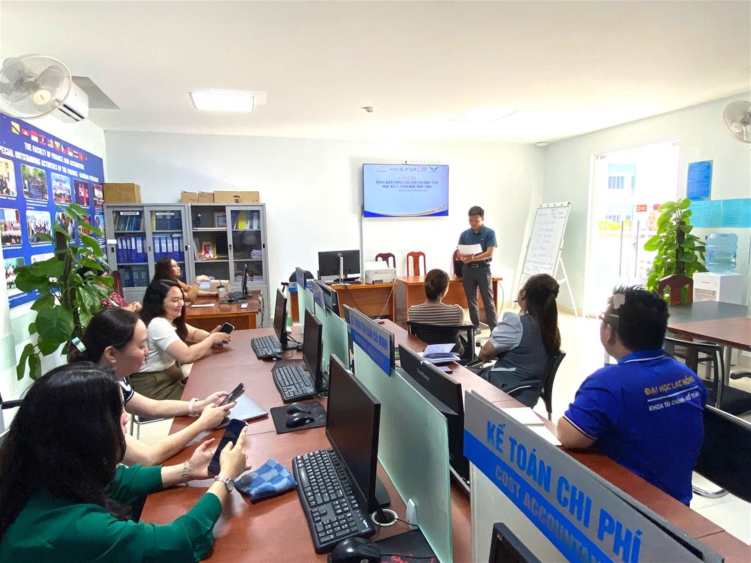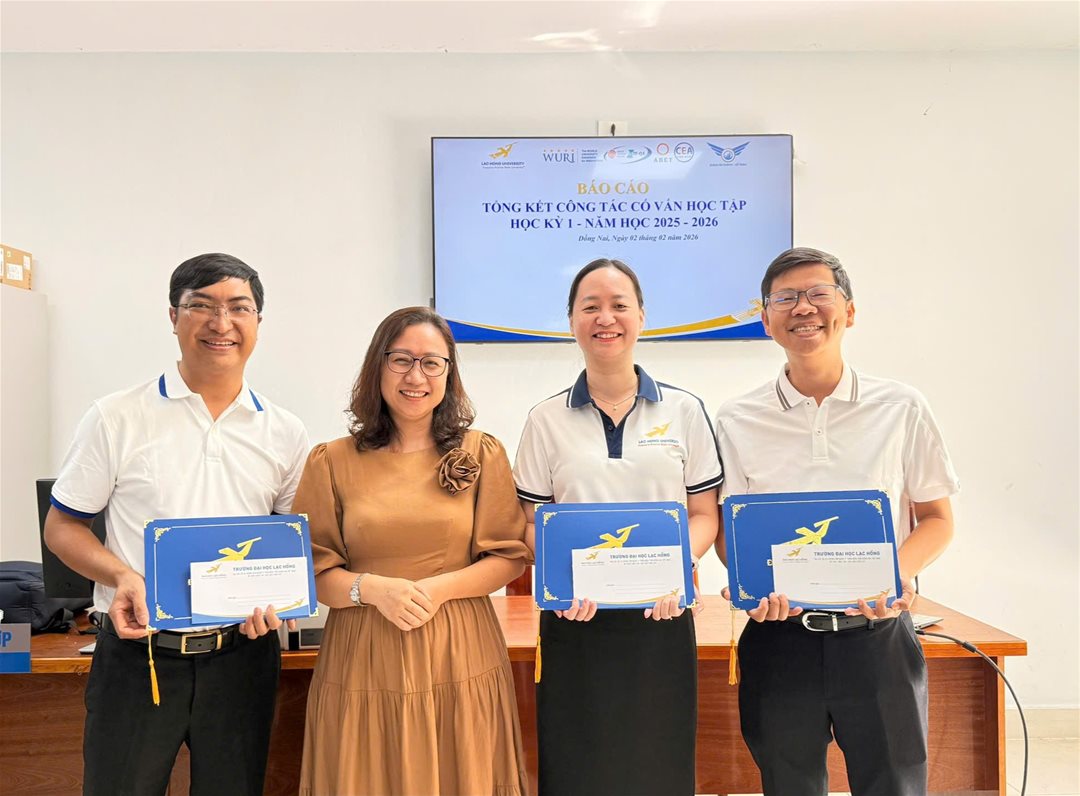 Ngày 02/02/2026, tại phòng B202, Khoa Tài chính – Kế toán, Trường Đại học Lạc Hồng đã tổ chức chương trình Báo cáo tổng kết công tác Cố vấn học tập học kỳ I, năm học 2025 – 2026 nhằm đánh giá toàn diện kết quả triển khai hoạt động cố vấn, đồng thời ghi nhận và biểu dương những cá nhân có thành tích xuất sắc trong công tác hỗ trợ sinh viên.