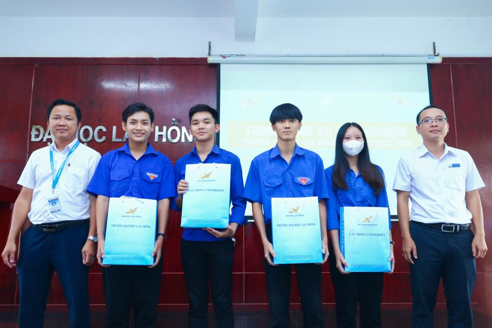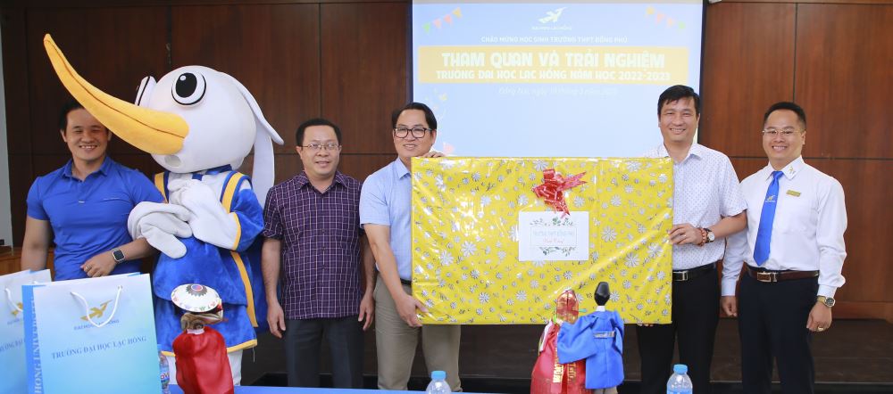 Representatives of Dong Phu High School giving a souvenir gift to LHU