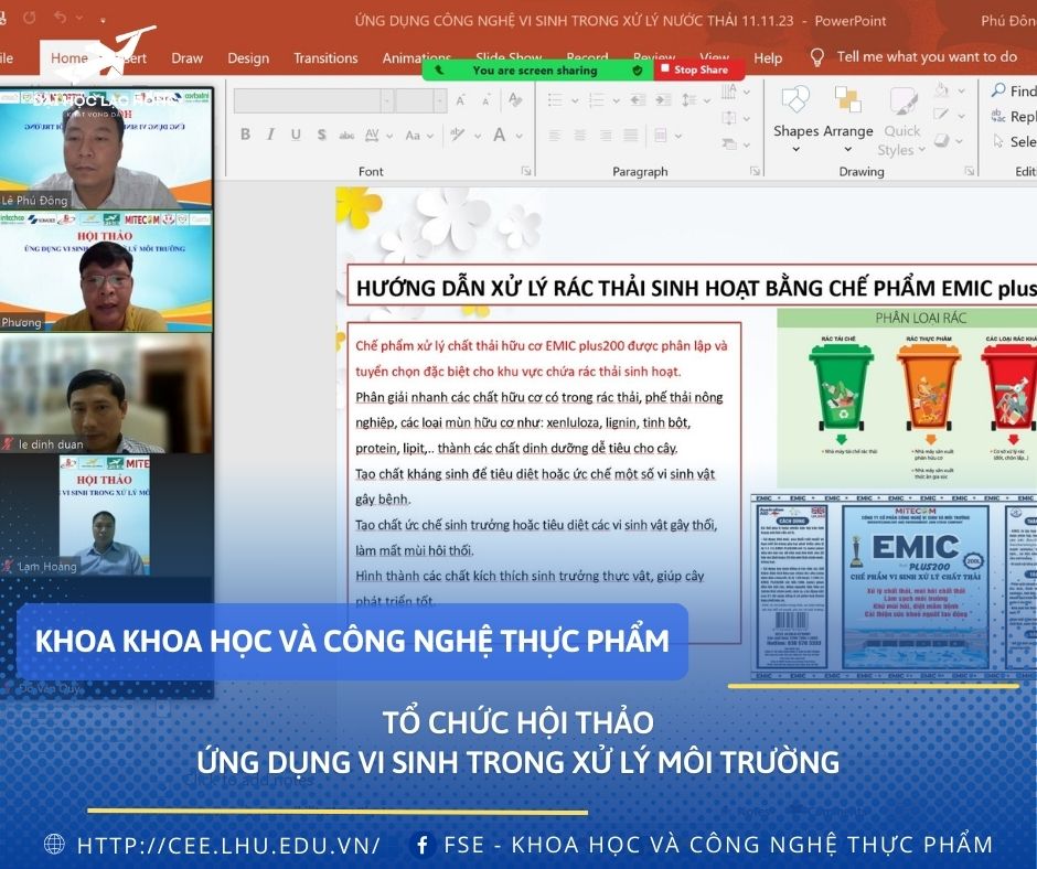 The Faculty of Food Science and Engineering, LHU in collaboration with 7 businesses on November 11 organized an online workshop themed "Microbiological Applications in Environmental Treatment" to spread environmental protection and sustainable development.