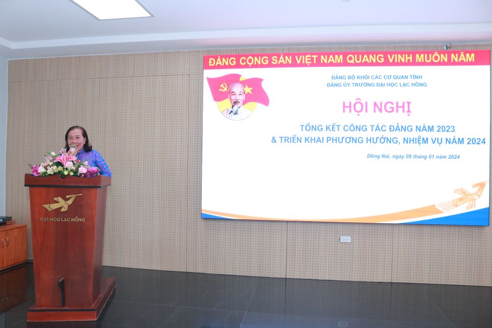 Comrade Nguyen Thi Thu Lan emphasized the key contents in 2023 and 2024: implementing solidarity and unity in the Party and the University, well organizing the political and ideological education, enhancing self-criticism and criticism amongst cadres and Party members, especially implementing the movement of studying and following President Ho Chi Minh's ideology, morality and lifestyle.