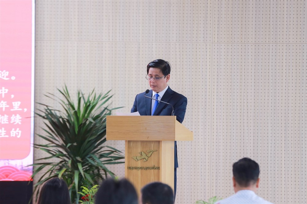 Attending the event, from the Consulate General of the People's Republic of China in Ho Chi Minh City were Mr. Xu Zhou - Deputy Consul General and Mr. Zeng Zi Wei - Consul. From the provincial leaders, there was Ms. Tran Thuy Tien - Vice Chairwoman of the Vietnam - China Friendship Association of Dong Nai Province. From LHU, there were Dr. Lam Thanh Hien - Rector; Assoc. Prof. Dr. Nguyen Vu Quynh - Vice Rector; Dr. Nguyen Huu Nghi - Dean of the Faculty of Oriental Studies; Nguyen Thi Hoang Oanh, M.A - Head of the Office of International Affairs; Phan The Anh, M.A - Program Head of the Chinese Language Department; Luong Van Huy, M.A - Department Head of Chinese Language; representatives of affiliated units, lecturers and students majoring in Chinese Language.