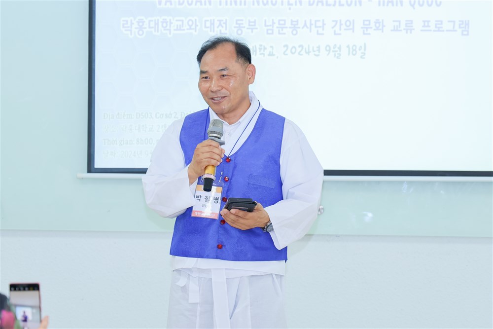 At 8:00 a.m. on September 18, 2024, at Hall D503, Campus 2, the Department of Korean Studies under the Faculty of Oriental Studies, LHU successfully organized a cultural exchange program between its students and a volunteer delegation from Daejeon province, Korea, consisting of 25 members as oriental medicine doctors and students.