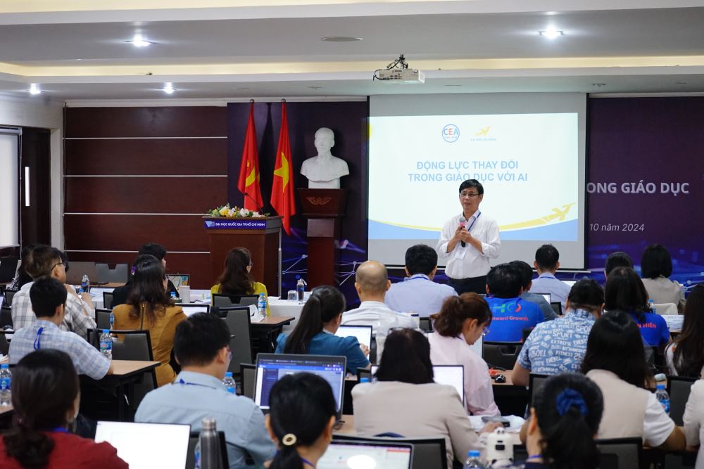 The workshop provided an overview of AI applications and introduced some AI tools in education, the risks and solutions of AI, concurrently sharing basic knowledge and skills to use AI for teaching, ensuring quality assurance at educational institutions. In addition, LHU's sharings of AI uses in education brought many practical values ​​to higher education institutions, managers and lecturers, contributing to the sustainable development of education in the digital age.