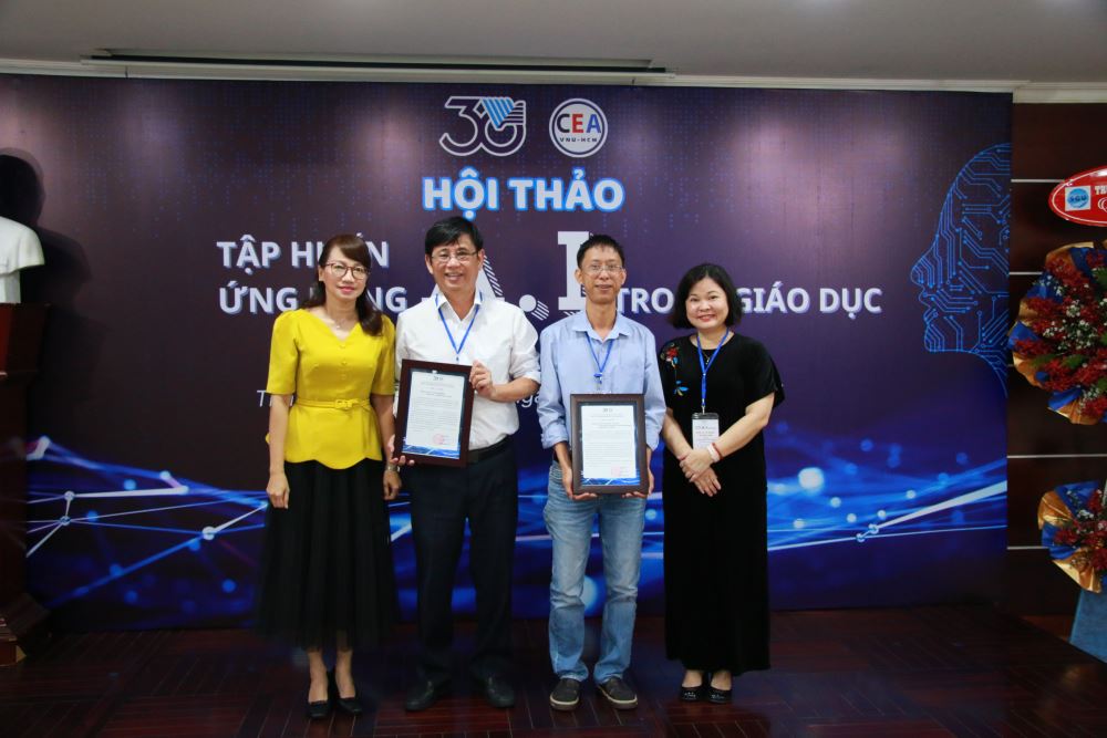 Dr. Lam Thanh Hien and Dr. Le Phuong Truong receiving letters of thanks from Prof. Dr. Nguyen Thi Thanh Mai, VNUHCM Vice Chancellor and Assoc. Prof. Dr. Le Ngoc Quynh Lam - Director of the Center for Education Accreditation, VNU-HCM