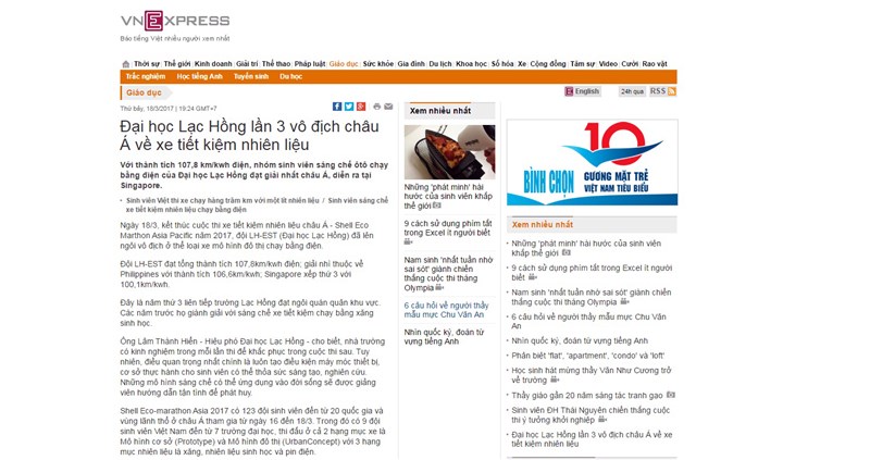 Thanh Nien Newspaper and VNExpress Newspaper told the news about LHU's championship for three consecutive years.