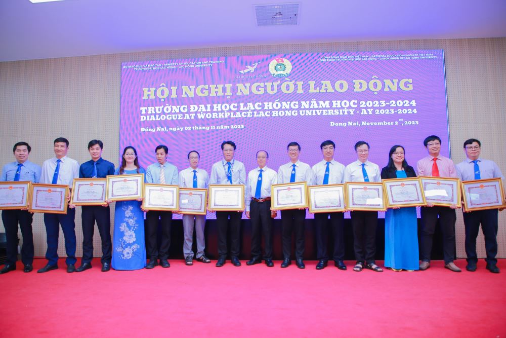 On the occasion, the University honored and awarded certificates of merit to excellent collectives and individuals for their outstanding achievements in emulation movements and activities such as the title "Good at work, Responsible at home", emulation titles of the Provincial People's Committee, LHU Labor Union.