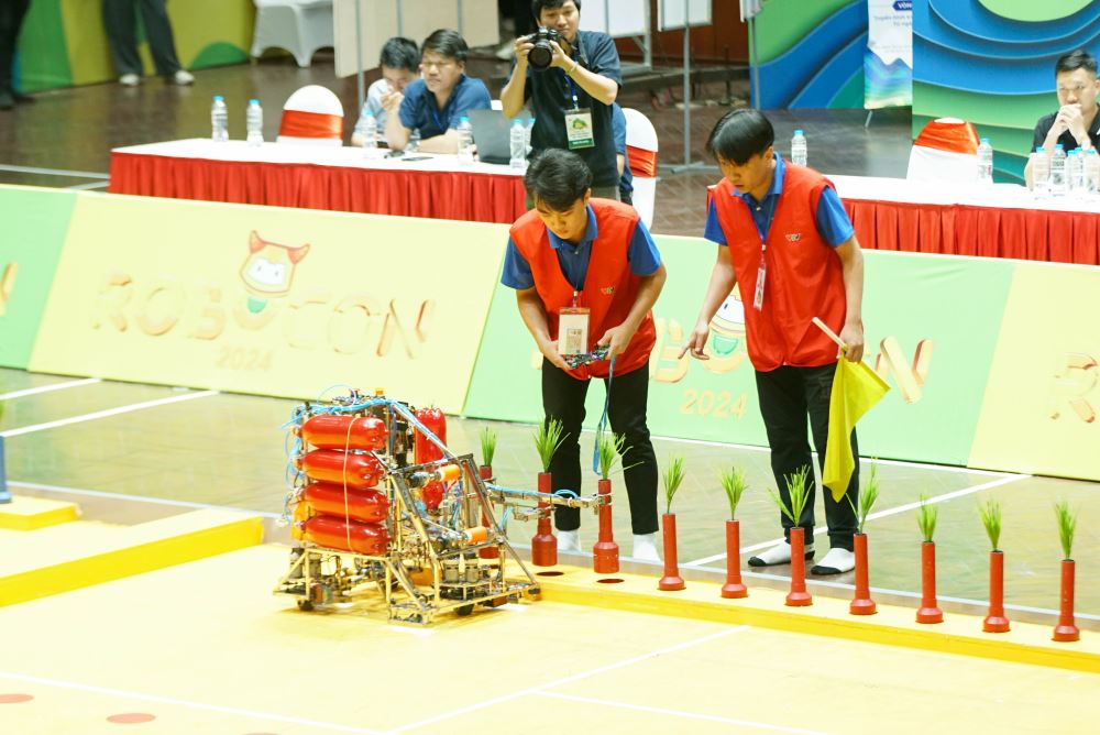 From May 4 - 5, 2024, the preliminary round of Vietnam Robot Innovation Contest 2024 (Vietnam Robocon 2024) kicked off at Tay Ho District Gymnasium, Hanoi with the participation of 64 teams from 23 universities, colleges and technical schools nationwide.