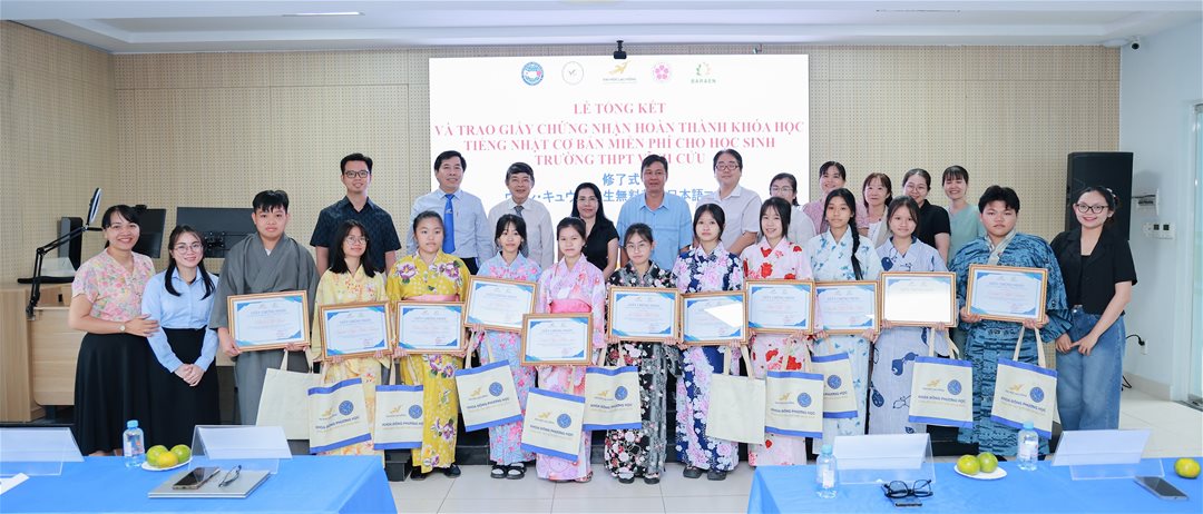 On August 7, 2025, the Faculty of Oriental Studies at LHU, in collaboration with Baraen Services Trading Production Company Limited (Baraen Co., Ltd.), hosted a certificate awarding ceremony for the Basic Japanese Language Course for students of Vinh Cuu High School. The event celebrated the students’ achievements and marked the first milestone in their journey of exploring the Japanese language and culture.