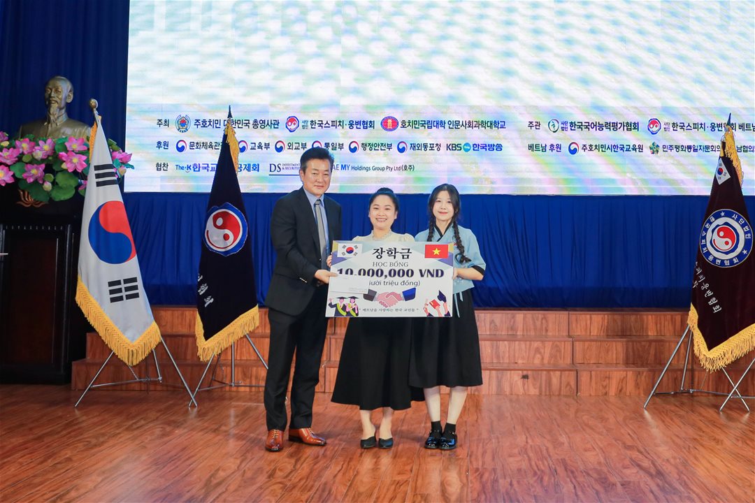 • Earlier, on May 10, at the 13th Korean Speech Contest 2025 organized by the Korean Speech Contest Association of Vietnam, the Korean Cultural Association in Vietnam, and Life Plaza Magazine, LHU students excellently won First prize in the Team Debate and Third prize in the Individual Speech, awarded to student Duong Huynh Bao Tran. These outstanding accomplishments laid a solid foundation for their impressive performance on the international stage.