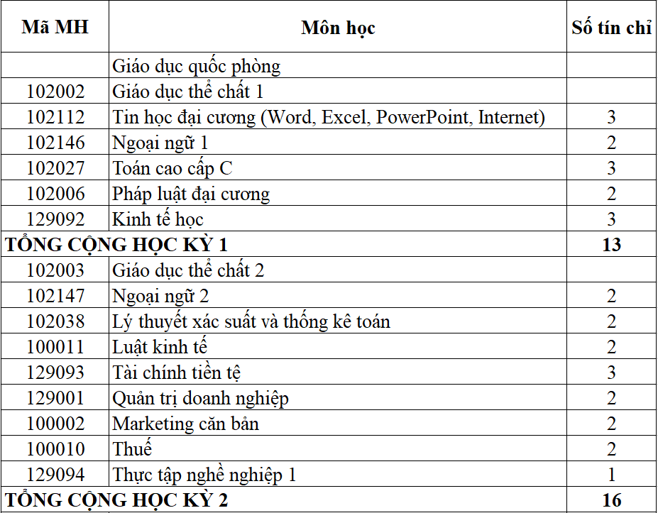 - Hình thức đào tạo: chính quy tập trung.