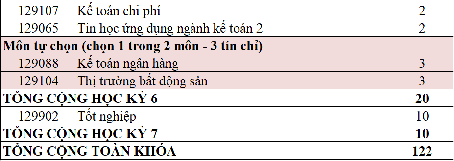 Chương trình đào tạo ngành Kế toán (niên khóa 2025-2029)