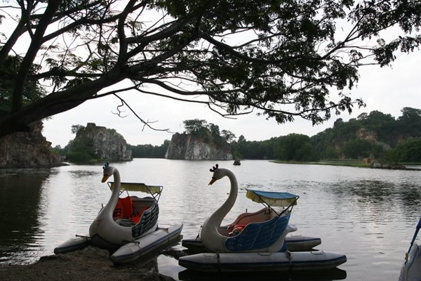 Buu Long Park was built around an artificial reservoir formed after hundreds of years of stone exploitation by humans - Long An lake (Hidden Dragon Lake). The lake is tens of hectares in width. It can be said that Long An lake is like a zoomed-out painting on Ha Long Bay. Many high cliffs standing on clear water surfaces create a charming landscape which is in harmony with art architectures marked by religion through ages.