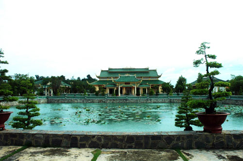 On one side of the temple are Long An and Buu Long mountains, immensefields with flying herons, and distant rooftops and trees. On the other side flows the majestic Dong Nai River, mingling with smaller river branches to create a charming and poetic landscape. Opposite this is Thanh Long Bach Ho, a high and dry area aligned with feng-shui principles.