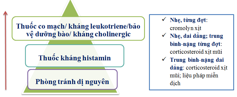 - Corticoid xịt mũi chỉ dùng ở bậc hai, dùng hàng ngày và chỉ ngừng sau khi hết triệu chứng ít nhất 1 tháng.