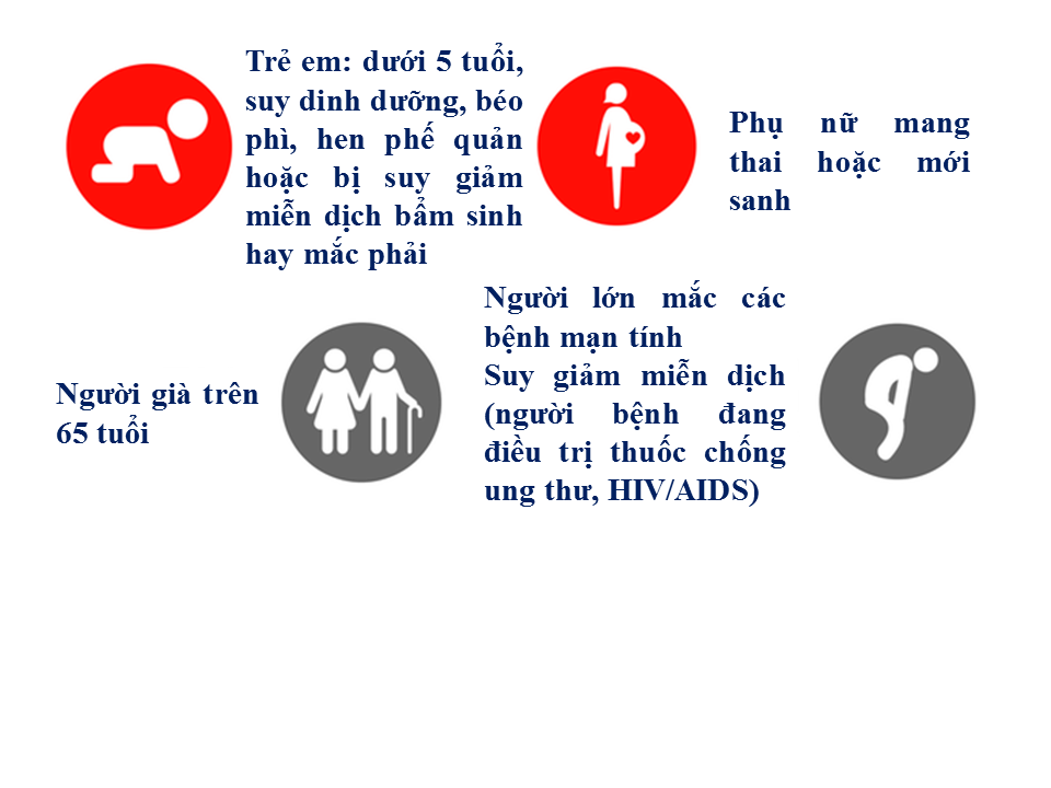 • Người có bệnh mạn tính (bệnh phổi mạn tính, bệnh tim bẩm sinh, suy tim, đái tháo đường, suy giảm miễn dịch…);